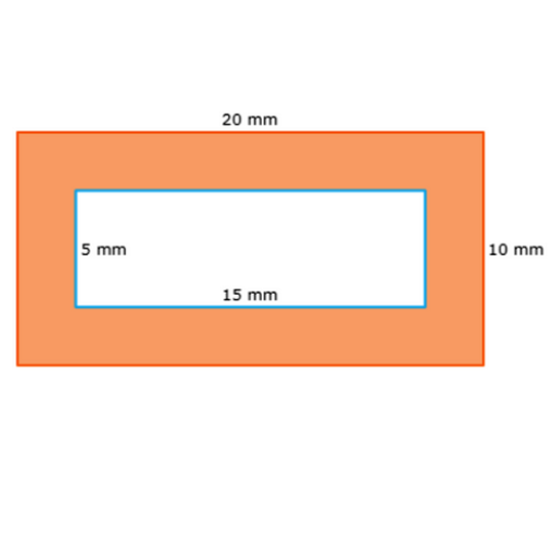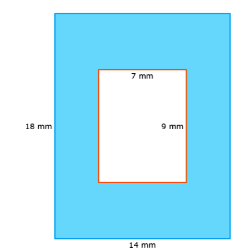 - As with the inner rectangle, the lengths of the outer rectangle are measured in millimetres. So, the area is measured in square millimetres.